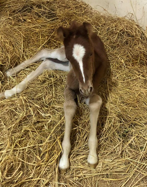 The horse, we called him "Orion", is in our stable and was able to stand up for the first time today.