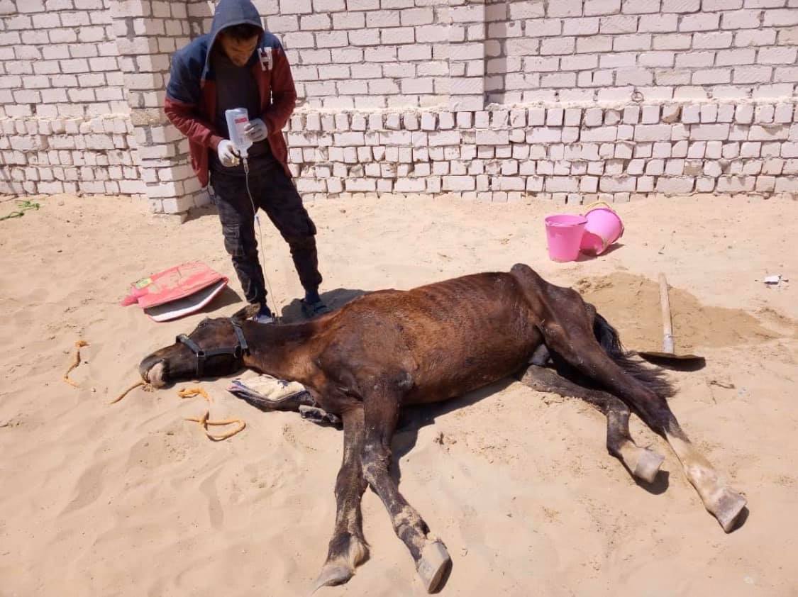 The horse was immediately brought to our stable in Matrouh and given medical care.