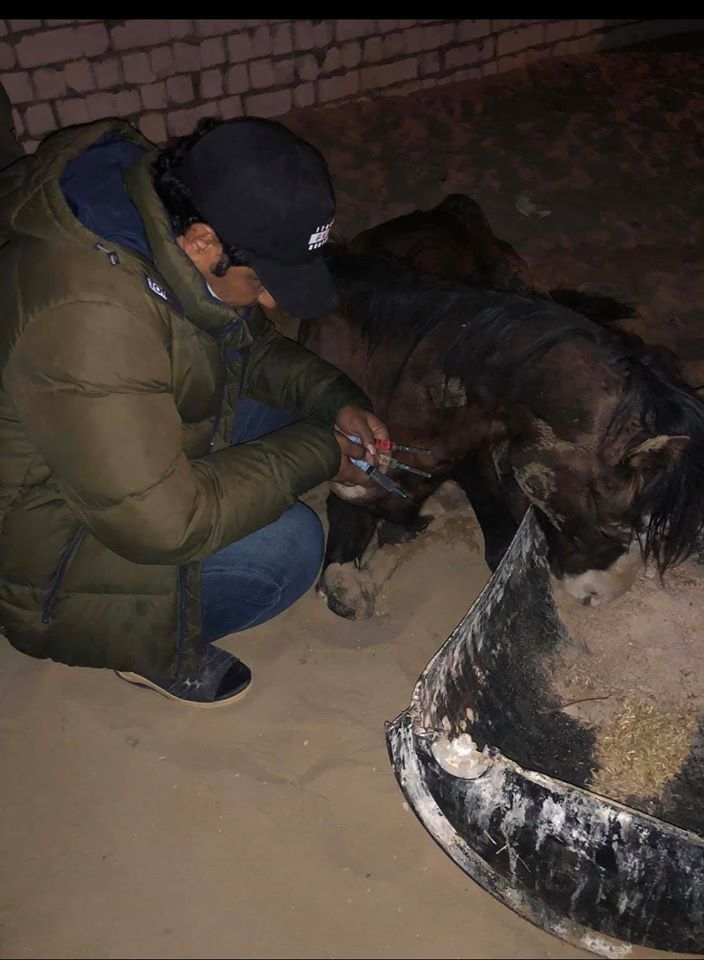 The horse was immediately brought to our stable in Matrouh and given medical care.